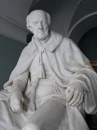 Sculpture of Lord Rolle (died 1842), inscribed on plinth: "E.B. Stephens sculp. London 1844", in entrance hall of Bicton House, Exeter, Devon. By Edward Bowring Stephens (1815–1882); exhibited at the Royal Academy, London, as: "A marble statue of the late Lord Rolle in the robe worn at the coronation of Her Majesty the Queen". An identical earlier version dated 1843 exists in the entrance hall of Lupton House, Brixham, the home of John Yarde-Buller, 1st Baron Churston (1799–1871)