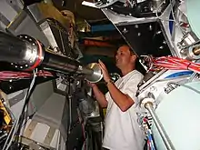 ![]() British nuclear physicist John Simpson closing up the Euroball gamma-ray spectrometer target chamber | |