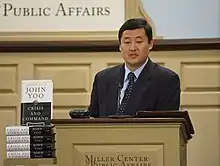 John Choon Yoo (Korean: 유준; born July 10, 1967)[2] is a Korean-born American legal scholar and former government official who serves as the Emanuel S. Heller Professor of Law at the University of California, Berkeley. Yoo became known for his legal opinions concerning executive power, warrantless wiretapping, and the Geneva Conventions while serving in the George W. Bush administration, during which he was the author of the controversial "Torture Memos" in the War on Terror.