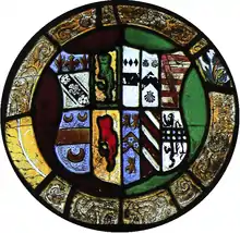 • Elyn Aston, wife of John Morgan (d.1535) of Mapperton Hall, Dorset. Her arms, with six quarters, impaled by Morgan, survive in a stained glass window in All Saints' Church, Mapperton.[16]