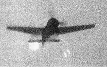 Johnson's wing was the first to be stationed on French soil following the invasion. With their radius of action now far extended compared to the squadrons still in Britain, the wing scored heavily through the summer.[67] On 21 August 1944, Johnson was leading No. 443 Squadron on a patrol over the Seine, near Paris. Johnson bounced a formation of Focke-Wulf Fw 190s, shooting down two, which were recorded on the cine camera.[68] Climbing back to his starting point at 8,000 ft, Johnson attempted to join a formation of six aircraft, he thought were Spitfires. The fighters were actually Messerschmitt Bf 109s. Johnson escaped by doing a series of steep climbs, during which he nearly stalled and blacked out. He eventually evaded the Messerschmitts, which had been trying to flank him on either side, while two more stuck to his tail. Johnson's Spitfire IX was hit by enemy aircraft fire for the only time, taking cannon shells in the rudder and elevators.[69] Johnson had now equalled and surpassed Sailor Malan's record score of 32, shooting down two Fw 190s for his 32nd and 33rd air victories.[70] However Johnson considered Malan's exploits to be better. Johnson points out, when Malan fought (during 1940–41), he did so outnumbered, and had matched the enemy even then. Johnson said:
