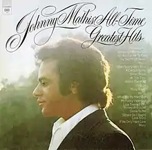 Johnny Mathis' All-Time Greatest Hits is a compilation album by American pop singer Johnny Mathis that was released in the spring of 1972 by Columbia Records and, despite its title, overlooks a good number of his Top 40 hits ("No Love (But Your Love)", "Teacher, Teacher", "Call Me", "Someone", "Starbright", "Every Step of the Way")[3] in favor of his singles that did not make the Billboard Hot 100 ("Venus", "Misty Roses", "If We Only Have Love") and album tracks that were not released as singles ("When Sunny Gets Blue", "(Where Do I Begin) Love Story", "My Funny Valentine").