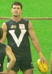 Brown grew up on his family's property and attended school at Emmanuel College Warrnambool.[4] He grew up a Fitzroy fan and began playing Australian rules at an early age, playing school football and cricket with the Emmanuel College Hawks.[5] Brown began playing senior football with the South Warrnambool Football Club at the age of 15. He began senior cricket at about the same time and was a stand-out left-arm fast bowler. He played A-Grade cricket with Wesley CBC where he was Cricketer of the Year two years in a row and played in a senior premiership. He was also invited to play in the Victorian under-17 squad. However, he focused on Australian rules, pursuing a dream of following Ted Whitten to represent Victoria in State of Origin.[6] Brown drew the attention of AFL recruiters while playing under-18 representative football for the Geelong Falcons in 1999 at the national carnival in Brisbane when he was named as an All-Australian.
