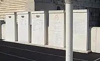 Monoliths at the entrance to the Panathenaic Stadium in Athens, where was held the first Olympics Game of the modern era, which refers to Joseph Benjamin Zubiaur, as a member of the International Olympic Committee.