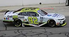 Williams and family made one Camping World Truck Series start in a partnership with T3R2 Racing, falling out at Martinsville Speedway in 2014.[16] He made two Xfinity Series starts as a start and park driver in 2016, one for Jimmy Means Racing and one for King Autosport.[17] He was announced as the driver of King's No. 90 entry for the spring Bristol Motor Speedway Xfinity race on April 21, 2017.[18] Longtime friend Mario Gosselin helped Williams get the ride.[19] Along with the Bristol race, Williams wanted to run about six Truck races for his family team in 2017.[20] The Truck races never came, but Williams garnered six other starts split between King's 90 and 92 cars, mostly starting and parking in the 92 and running full races in the 90. At Daytona in summer, Williams was running just outside the top ten before he was clipped by Daniel Suárez, finishing last.[21] Williams broke the top thirty in all of his full races.[22]
