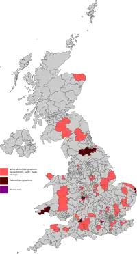 Constituencies of MPs who resigned or were dismissed