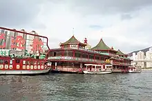 Jumbo Kingdom (Chinese: 珍寶王國) consisted of the Jumbo Floating Restaurant (Chinese: 珍寶海鮮舫) and the adjacent Tai Pak Floating Restaurant (Chinese: 太白海鮮舫), which were tourist attractions in the Aberdeen South Typhoon Shelters within Hong Kong's Aberdeen Harbour. During its 44 years of operation, over thirty million visitors visited Jumbo Kingdom, including Queen Elizabeth II, Jimmy Carter, Tom Cruise, Chow Yun Fat, and Gong Li.[1] A subsidiary, Jumbo Kingdom Manila, operated in Manila Bay, Philippines, but closed after eight years. Jumbo Kingdom was part of Melco International Development Limited, a company listed on the Hong Kong Stock Exchange. It suspended operations in 2020 amidst the COVID-19 outbreak.