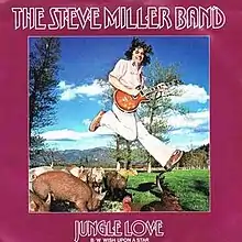 "Jungle Love" is a 1977 song by the Steve Miller Band, featured on the album Book of Dreams. It was written by Lonnie Turner (longtime bass player for the Steve Miller Band)[3] and Greg Douglass (a well-known San Francisco sideman who also played with Hot Tuna and Greg Kihn, among many others).[4] It reached No. 23 on the Billboard Hot 100.[5]