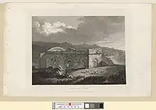 Apparently, he picked up his head and crossed Ramsey Sound walking on the water carrying his head in his arms and his body was buried in the small ruined chapel which still stands on the mainland at St Justinian's, immediately opposite his island home; his bones were later moved to St Davids Cathedral.[2][3] During the reformation, Bishop William Barlow was strongly opposed to the veneration of relics, pilgrimages, and other Catholic practices. In an attempt to suppress the cult of St David, at St David's Cathedral, in 1538 he stripped St David's shrine of its jewels and confiscated the relics of St David and St Justinian in order to counteract "superstition".