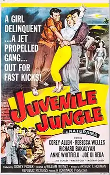 Juvenile Jungle is a 1958 American crime film directed by William Witney and written by Arthur T. Horman. The film stars Corey Allen, Rebecca Welles, Richard Bakalyan, Anne Whitfield, Joe Di Reda and Joe Conley. The film was released on April 24, 1958 by Republic Pictures.[1][2][3]