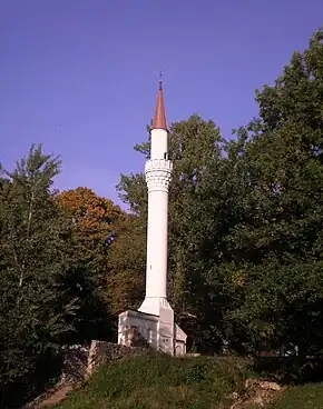 The minaret was erected in 1880 by a Russian general, Eduard Totleben, who was the owner of an estate in Kėdainiai. It was built to commemorate his service in the Russian-Turkish war, in which he had participated. Local legend claims that it was constructed in memory of his Turkish lover.[1][2]