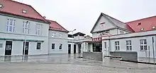 During World War II, the Germans operated multiple forced labour camps in the area. In Kędzierzyn there was a forced labour "education" camp,[10] and three subcamps (BAB 20/E794, BAB 40/E794, E711A) of the Stalag VIII-B/344 prisoner-of-war camp.[8] In the present-day district of Blachownia Śląska there was a forced labour subcamp of the prison in Strzelce Opolskie,[11] and four subcamps (BAB 21/E793, BAB 48/E793, E3, E714) of the Stalag VIII-B/344 camp.[8] In the present-day district of Kłodnica, there was the E800 subcamp of the Stalag VIII-B/344 camp.[8] In Sławięcice there was another forced labour "education" camp,[12] two subcamps (E6, E207) of the Stalag VIII-B/344 camp,[8] and a subcamp of the Auschwitz concentration camp[13] which operated from April 1, 1944, to January 26, 1945.[14] In Sławięcice, there was also a crematorium for the victims of the camps,[15] which is now a memorial. Allied prisoners of war of various nationalities, Jews, and Polish children[16] were among the victims of the forced labour camps. In the final stages of the war, in 1945, a German-conducted death march of thousands of prisoners of several subcamps of the Auschwitz concentration camp passed through Blachownia and Koźle towards the Gross-Rosen concentration camp.[17]