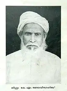 Kaathib Thayyil Mohammed Kutty Musliyar, popularly known as K. M. Moulavi or K. M. Maulavi, was an Indian revolutionary. He was a leader of the Indian independence movement, Khilafat Movement, Muslim League[1] and Islahi Movement from Malabar district. He was a religious scholar who promoted modern education, the Malayalam language, and Muslim women's education. He worked to uplift the Mappila community after the Malabar rebellion.[2][3][4]