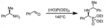 Enantioselective variants of the Kabachnik-Fields reaction have been developed, for example employing α-methylbenzylamine provides a chiral, non-racemic α-aminophosphonate.[6]
