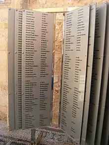 A number of plaques adorn the exterior and interior of the synagogue. Most, primarily in Ladino, the language of the Sephardic community, and Hebrew are dedicated to those who maintained the synagogue. Another, in French, is dedicated to the members of the community who were murdered during the Holocaust.