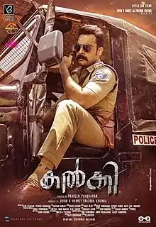 Kalki is a 2019 Indian Malayalam-language action crime film directed by Praveen Prabharam and produced by Suvin K. Varkey and Prasobh Krishna for their studio Little Big Films.[1] The film stars Tovino Thomas in the lead role, while Shivajith Padmanabhan, Samyuktha Menon and Vini Vishwa Lal appear in supporting roles. In the film, a cop named K takes charge at a village named Nanchenkotta, where he tries to restore peace and locks horns with a political leader.