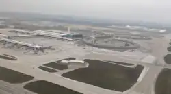 ![]() The New Terminal is at the left, with the former terminals in the center-right along with their garages. Green landscape occupies the former Circle Parking lots' location. | |||||||||||||||||||