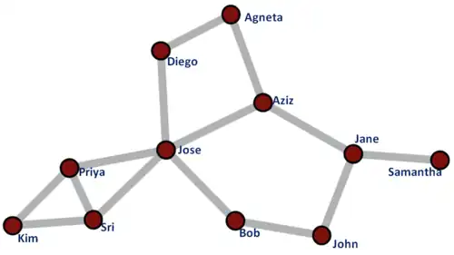 A simple social network: the nodes represent people or actors and the edges between nodes represent some relationship between actors