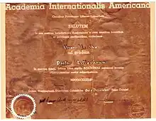 - "Doctor Literarum" (Doctor of Literature) by International Academy of America – 1936