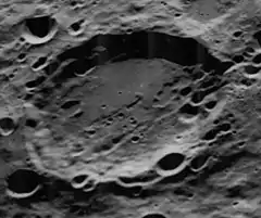 Kekulé is a lunar impact crater on the far side of the Moon. It lies just to the west-southwest of the larger crater Poynting, on the edge of the ejecta skirt surrounding the walled plain Hertzsprung to the southeast.