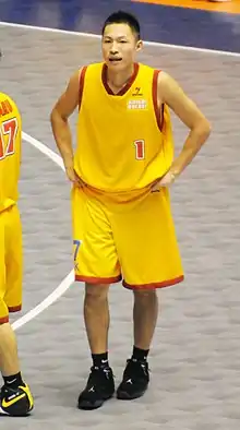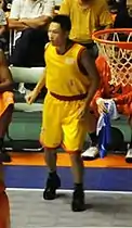 Kenichi Takahashi (高橋 憲一, Takahashi Ken'ichi, born December 22, 1980), nicknamed Shocho, is a former Japanese professional basketball player and served for Akita Northern Happinets of the B.League as the ambassador.[1] Takahashi is currently the instructor for Toreiku Katagami.[2] He was selected by the Sendai 89ers with the third overall pick in the 2006 bj League draft. He has played for the four Tohoku clubs of the bj league. In October 2015 he became a one-day honorary police chief at the Akita Higashi Police Station. Since then a police officer salute has become popular among Akita's boosters.[3][4] Takahashi studies NBA to improve his game,[5] and he is an Air Jordan collector.[6] His retirement memorial game was held at Akita Prefectural Gymnasium on October 29, 2017.[7][8]