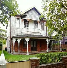 The hill that dominates West Kensington is occupied by the Sacred Heart Monastery, the Australian headquarters of the Catholic Missionaries of the Sacred Heart.[10] The monastery was designed by Sheerin & Hennessy and built in 1895. It is a large stone building in the Gothic style and features an attic storey and a prominent central tower. It also includes a brick chapel in a Romanesque-Byzantine style which was designed by Mullane and built in 1939, and which is joined to the monastery by a matching brick cloister. The monastery is a prominent landmark which can be seen from various parts of Kensington and is now listed on the Register of the National Estate.[11] In the mid-twentieth century, the monastery was the home of the anti-Communist organiser Dr P.J. ('Paddy') Ryan, the popular Catholic controversialist Dr Leslie Rumble,[12] the former athlete Jim Carlton, the retired missionary Francis Xavier Gsell and the editor Fr Paul Stenhouse. The monastery published the long-running magazine Annals Australasia.
