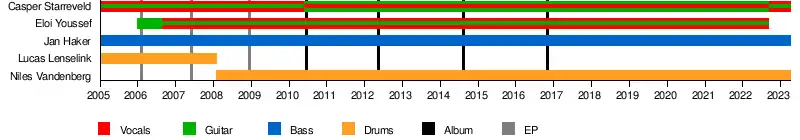 On 12 November 2021, the band announced that their lead singer, Eloi Youssef, would leave the band in 2022 due to creative differences. They performed together for the last time in September 2022.[51]