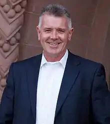 Carr retired in 2003, and later joined the federal Liberal Party. In 2003, Flynn ran for the seat again and this time defeated Progressive Conservative candidate Kurt Franklin by about 3500 votes.[7] The Premier appointed Flynn as parliamentary assistant to the Minister of Labour in 2004. Subsequently, Flynn served as Parliamentary Assistant to the Minister of Energy, the Minister of the Environment, the Minister of Training, Colleges and Universities, and the Minister of Education.[8]