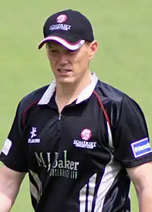 O'Brien's performance at the World Cup attracted the attention of Gloucestershire County Cricket Club and he secured a contract with the club for 2011.[36] John Bracewell, Gloucestershire's coach, viewed O'Brien as primarily a one-day player and believed his style of batting was best suited to situations where the team needed to increase their run-rate. He made his debut for Gloucestershire on 15 May, scoring three runs from four balls in a CB40 match against Glamorgan.[37] In June he scored his first century in twenty20 cricket, beating his previous highest score of 39.[38] His innings of 119 runs against Middlesex came from 52 deliveries and helped lift Gloucestershire to the highest total in the history of domestic T20 cricket. O'Brien shared an opening stand of 192 with Hamish Marshall, who also scored a century, and the pair set a record partnership for any wicket in the format.(But this record was broken in just a few years) When O'Brien was finally dismissed, he received a standing ovation.[39] Both Kevin O'Brien and Hamish Marshall became the first pair of batsmen to score centuries in a single T20.[40][41][42][43]