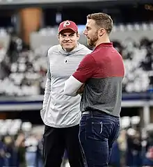 On January 20, 2017, O'Connell was hired as the Washington Redskins' quarterbacks coach, working under head coach Jay Gruden.[22] In 2019, under interim head coach Bill Callahan, O'Connell was promoted to offensive coordinator.[23] After the 2019–20 regular season, O'Connell was not retained by the incoming new head coach, Ron Rivera.[24]
