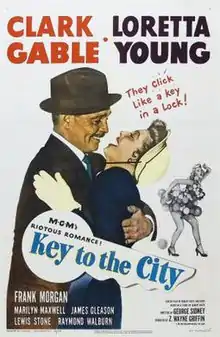Key to the City is a 1950 American romantic comedy film starring Clark Gable and Loretta Young as mayors who meet in San Francisco, and despite their contrasting personalities and views, fall in love.