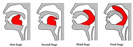 In the beginning stages and for most practitioners, the tip of the tongue touches the soft palate as far back as possible without straining,[7] or is placed in contact with the uvula at the back of the mouth.[8][lower-alpha 1] Mudrā (Sanskrit, मुद्रा, literally "seal"), when used in yoga, is a position intended to awaken spiritual energies in the body.[11]