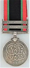 While no complete British Army unit took part in any qualifying campaign, a 48 strong British Army Maxim Gun detachment drawn from a number of different regiments received the Durfur 1916 clasp, while the medal without clasp was awarded to a camel corps company manned by the Royal Warwickshire Regiment, in reserve during this campaign.[2] A number of members of the Royal Flying Corps received the medal with the Durfur 1916 and Fasher clasps, while about thirty members of the Royal Air Force received the Garjak Nuer clasp.[1]