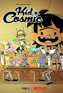 Kid Cosmic is an American animated superhero television series created by Craig McCracken and developed by McCracken, Lauren Faust and Francisco Angones for Netflix. The series was based on his 2009 comic The Kid from Planet Earth. Produced in-house by Netflix Animation, the show is McCracken's first to have a serialized format, as well as his second foray into the superhero genre, having previously created The Powerpuff Girls.[1][2] Illustrated in a "retro 2D" style inspired by comics such as Dennis the Menace and The Adventures of Tintin, the series follows Kid, a young boy who gets a chance to become a superhero and fight evil aliens alongside other characters with different abilities.[3][1]