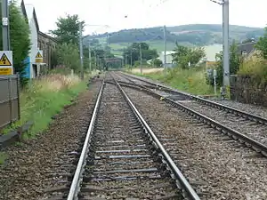 The station was closed on 22 March 1965[7] and its buildings and platforms subsequently removed, but the line remains in use for freight, express passenger and local passenger trains. It is the main line from Leeds to Carlisle and Morecambe and as part of the electrified Airedale Line it carries commuter services running between Leeds and Skipton. Proposals have been put forward on several occasions to re-open the station but none of these have been successful. West Yorkshire Metro listed the former site as having a strong business case in 2014 and ordered further study.[8] However in December 2017, North Yorkshire County Council announced the shelving of plans to reopen the station due to a very low Benefit/Cost Ratio and because a reopened station would mean additional traffic on local roads and would cause the barriers at the adjacent Kildwick level crossing to be in the down position for longer.[9]