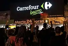 In Rio de Janeiro, one of the chain's units in Barra da Tijuca was forcibly closed by demonstrators, who stood in front of the store with a large banner with the phrase "Stop killing us".[41] Musicians Tico Santa Cruz, Nego do Borel and Pretinho da Serrinha participated in the act, in addition to actress Patrícia Pillar.[42] Protests also took place in the municipality of Belford Roxo, also in the state of Rio de Janeiro.[43]