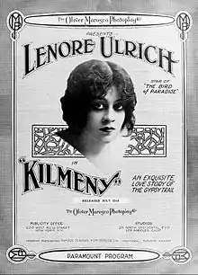 Kilmeny is a surviving 1915 American comedy silent film directed by Oscar Apfel and written by Louise B. Stanwood. The film stars Lenore Ulric, William Desmond, Doris Baker, Herbert Standing, Howard Davies and Gordon Griffith. The film was released July 22, 1915, by Paramount Pictures.[1][2]