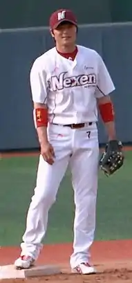 As a senior in 2001, Kim helped lead Hanyang University to clinch the national collegiate championship, and competed in the Baseball World Cup and Asian Baseball Championship as a starting third baseman for the South Korean national team.