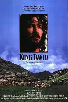 King David is a 1985 American Biblical epic film about the life of David, the second King of the Kingdom of Israel, as recounted in the Hebrew Bible. The film is directed by Bruce Beresford, written by Andrew Birkin and James Costigan, and stars Richard Gere in the title role. The ensemble cast includes Edward Woodward, Alice Krige, Denis Quilley, Cherie Lunghi, Hurd Hatfield, John Castle, Jean-Marc Barr, Christopher Malcolm, and Gina Bellman.