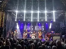 In January 2016, the band flew out to India to play at the Mahindra Blues Festival in Mumbai alongside Keb' Mo' and Joss Stone.[17][18] Then in February 2016 the band supported Thunder on an arena tour of the UK, including a show at London's Wembley Arena.[19] This was followed by a live recording of two gigs at the Picturedrome, Holmfirth, Yorkshire on 12 and 13 April for a live CD and DVD. Although the first night's show was intended for a live CD, this was abandoned due to technical problems. The show on 13 April was, however, used for the DVD. Instead, the show at the O2 ABC Glasgow, Scotland on 14 May 2016 was recorded for the live CD release.[20] The resulting recordings came out as King King Live in October 2016.[21] The CD + DVD set won the award for Best Live Album of 2016 in the annual Blues Awards.[22] It also gave the band their first entry into the UK Albums Chart, peaking at number 86, as well as reaching the number 1 spot on the Amazon Blues Chart.[23]