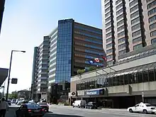 Modern day architectural developments on King Street include the following, Phase 1 of Lloyd D. Jackson Square (mall) was completed, including 100 King Street West (Stelco Tower) and 1 James Street North (Bank of Montreal Pavilion) in 1972.[11] Then in 1977, the second phase of Jackson Square was completed along with a 9 storey office building called the Robert Thomson Building, but not the department store intended to be its major attraction.[11] Also in 1977, The Art Gallery of Hamilton opened beside the Board of Education building.[12] In 1981, The Hamilton Convention Centre and the government office tower above it opened. The tower was named the Ellen Fairclough Building one year later in 1982.[13] In 1983, 120 King Street West (Standard Life Centre) opened at the west end of Jackson Square.[11] In 1985, Sheraton Hamilton, connected to Jackson Square, opened, boosting downtown Hamilton's hotel space.[11] In 1985, FirstOntario Centre (Formerly Copps Coliseum),a sports and entertainment arena with a capacity of up to 19,000 (depending on event type and configuration) opens its doors for business (one block North of King Street at Bay Street). It was named after the former Hamilton mayor, Victor K. Copps.[14] In 1987, the first of two reflective glass buildings of the CIBC tower (Commerce Place I) opened at King and James opposite Gore Park. The other (Commerce Place II) opened in 1990.[13]