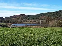 Kirk Dam is an impounding dam, located 1.5 kilometres south of Rothesay, and is separated by a causeway from the much larger Loch Fad to the south-west. It was built to provide water to the cotton mills of the town, and is now the habitat for a variety of marshland birds.[1] The earthfill dam is 6 metres high and records show it was constructed in the late 18th century.[2]