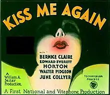Kiss Me Again is a 1931 American pre-Code musical operetta film filmed entirely in Technicolor. It was originally released in the United States as Toast of the Legion late in 1930, but was quickly withdrawn when Warner Bros. realized that the public had grown weary of musicals. The Warner Bros. believed that this attitude would only last for a few months, but, when the public proved obstinate, they reluctantly re-released the film early in 1931 after making a few cuts to the film.[1][2]