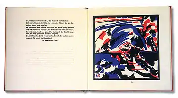Klänge (German; Sounds) is a book by the Russian expressionist artist Wassily Kandinsky. Published in an edition of 345 in Munich in late 1912,[1][2] the work is a famous early example of an artist's book, containing both poems and woodcuts by the artist, forming two parallel strands, each involving a loose progression.[3] One of three seminal books that Kandinsky published between 1911 and 1912 - the other two being Concerning the Spiritual in Art and Der Blaue Reiter Almanac that he edited with Franz Marc - Klänge was to have a direct and lasting influence on Expressionism, Dada and Russian Futurism.[4][5]