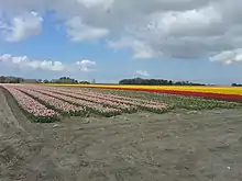 Kleine Huisjes was part of a salt marsh wall which was about 1 metre above sea level. Habitation started in the 11th or 12th century, and the land was protected by a dike around 1250.[6] In the mid-18th century, little houses were constructed for the workers who poldered the land and worked on the farms.[5] In 1827, it was first mentioned as Lutjeboeren (Little Farmers). Around 1900, the village was referred to as Kleine Huisjes on maps.[3]