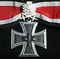 The Knight's Cross of the Iron Cross with Oak Leaves and Swords (Ritterkreuz des Eisernen Kreuzes mit Eichenlaub und Schwertern) was instituted on 15 July 1941.[6][10] The Oak Leaves with Swords clasp was similar in appearance to the Oak Leaves clasp with the exception that a pair of crossed swords were soldered to the base of the Oak Leaves.[6]