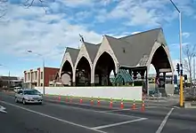 The original church was built in 1880 to a design by Samuel Farr. When the attendance increased beyond the capacity of the building, a new church was built in 1902 alongside the first one to a design by Robert England.[2] Located on the corner of Bealey Avenue and Victoria Street, it was one of Christchurch's historic buildings that was badly damaged during the 2011 Christchurch earthquake, but which has been repaired to a design by Wilkie and Bruce Architects using the remaining wooden frame.[3] Other buildings in the Knox complex remained functional.
