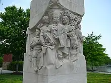Other companies that sprang up during this period were Knoxville Woolen Mills, Dixie Cement, and Woodruff's Furniture. Between 1880 and 1887, 97 factories were established in Knoxville, most of them specializing in textiles, food products, and iron products.[50] By the 1890s, Knoxville was home to more than 50 wholesaling houses, making it the third largest wholesaling center by volume in the South.[50] The Candoro Marble Works, established in the community of Vestal in 1914, became the nation's foremost producer of pink marble and one of the nation's largest marble importers.[51] In 1896, Knoxville celebrated its achievements by creating its own flag.[52] The Flag of Knoxville, Tennessee represents the city's progressive growth due to agriculture and industry.[53]
