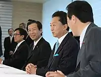 With Hirofumi Hirano, Yukio Hatoyama and Naoto Kan (September 18, 2009)