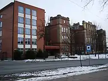 After the Russian Revolution of 1905, the Tsarist authorities removed some of the restrictions on education in the native language. Legal Lithuanian-language schools became a possibility. The first Lithuanian primary schools were established in Šančiai, Žaliakalnis, and by the Holy Cross Church in summer 1906. On 12 June 1906, Olšauskas and others established Saulė Society (officially registered on 25 July) to organize and maintain further Lithuanian schools in the Kaunas Governorate.[14] The society's program was quickly revised to emphasize that it is a Catholic organization open only to Catholics. Olšauskas was elected its chairman in September 1906.[15] Saulė quickly organized primary schools and they numbered 45 by 1910.[16] Local chapters were encouraged to establish libraries and reading rooms. Saulė also organized training courses for teachers and bookkeepers.[17] In 1911, Olšauskas and Juozas Tumas-Vaižgantas toured 55 Lithuanian American communities for three months to collect donations for the construction of Saulė headquarters in Žaliakalnis. They collected about $19,000 (equivalent to $597,000 in 2022) or 34,000 rubles.[18] More donations were collected in Lithuania and the headquarters, a three-storey brick building at a cost of 155,000 rubles, was completed in 1914.[19]